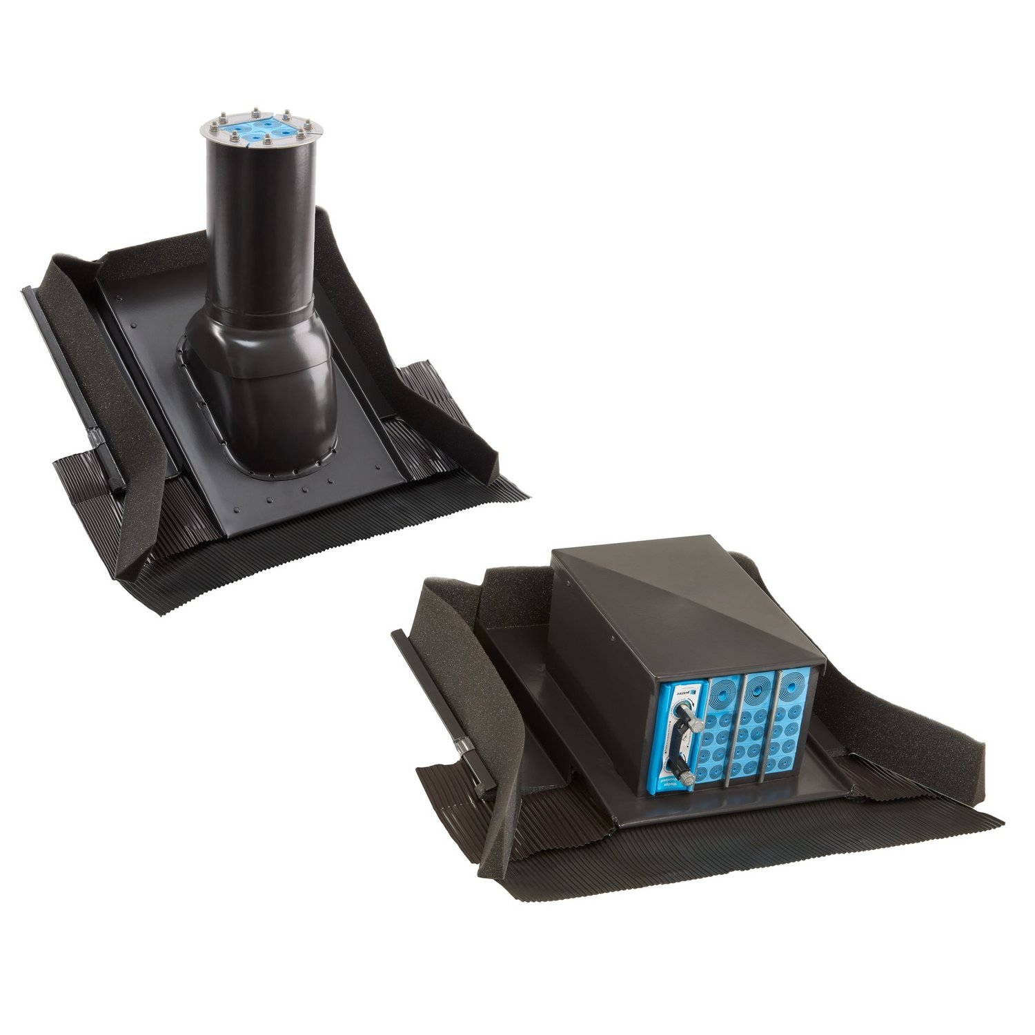 Beachten Sie unser vielseitiges Dachdurchführungsprogramm. Regensichere Dachdurchführungen für die Mobilfunktechnik, ausgestattet mit ROXTEC-Rahmen für den Einsatz von ROXTEC-Modulen (nicht im Lieferumfang enthalten). Universal und Ziegelspezifisch.