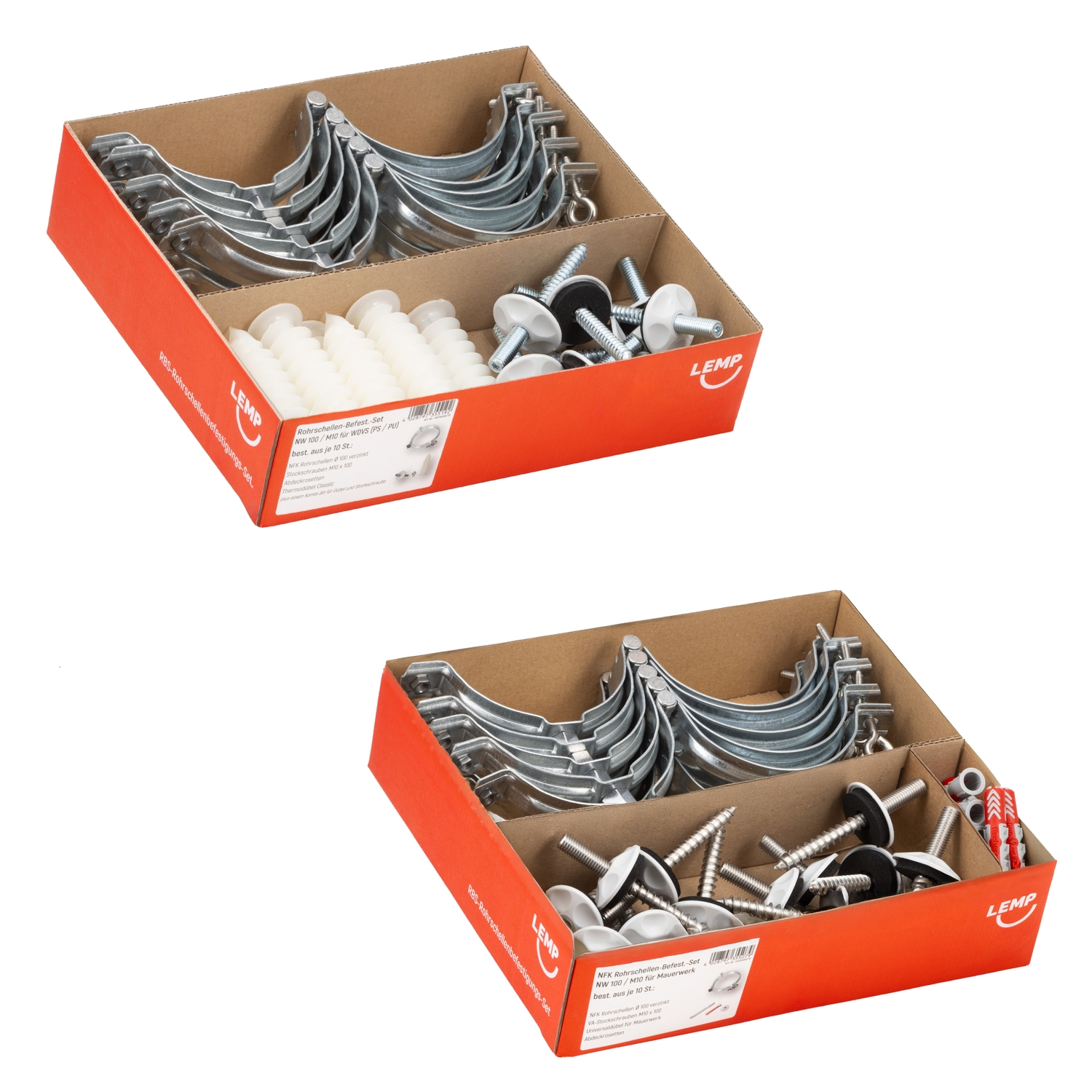 Mit dem Rohrschellenbefestigungs-Set (RBS) haben Sie immer alles für die Befestigung eines Regenfallrohres dabei. Dübel, für die Verankerung in der Wand oder dem Wärmedämmverbundsystem (WDVS), M10 Stockschrauben, Abdichtrosetten und natürlich der NFK Rohrschelle selbst.