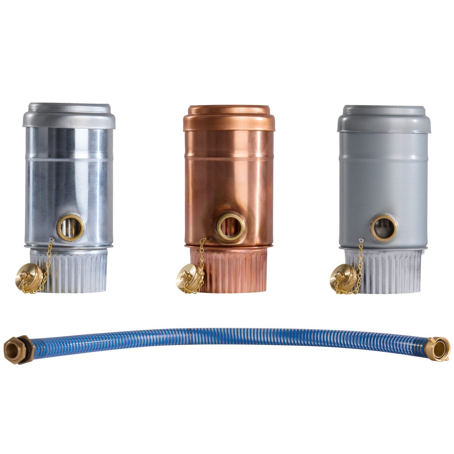 Kein Überlaufen der Regentonne mehr! Unsere Regenwassersammler sind in allen üblichen Fallrohrgrößen und Materialien erhältlich. Anders als bei herkömmlichen Regenrohrklappen, wird das Regenwasser gesammelt, bis die Tonne gefüllt ist, um danach automatisch weiter in das Fallrohr abgeleitet zu werden. 1 Zoll Wasserauslauföffnung. Lieferumfang: Standrohrkappe für den sauberen Anschluss an das Fallrohr und unverlierbare Messingverschlusskappe mit Kette, Schlauchanschluss (80 cm) 1 Zoll zur professionellen Verbindung zwischen Sammler und Regentonne (inkl. hochwertiger Messinggarnituren und Dichtungen). Nachrüstbar mit Gardena Anschluss- und Kupplungssystem oder mit 1-1/4 Zoll Schlauch.